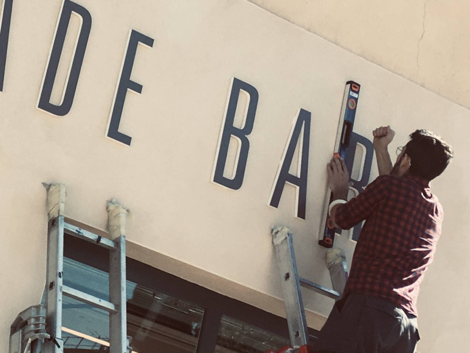Fabrication d'enseigne avec lettrage en relief à Lyon